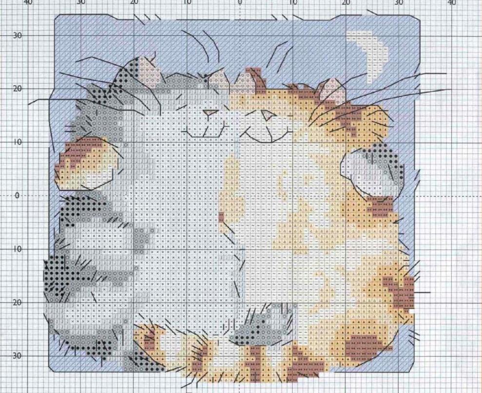 Коты символизируют тепло и уют, помогают хорошо спать. Их изображение дополнит любой интерьер. Поэтому картинка с котами может стать хорошим подарком. Популярны схемы с мультяшными животными и символами, а также большие картинки в реализме для опытных мастериц.