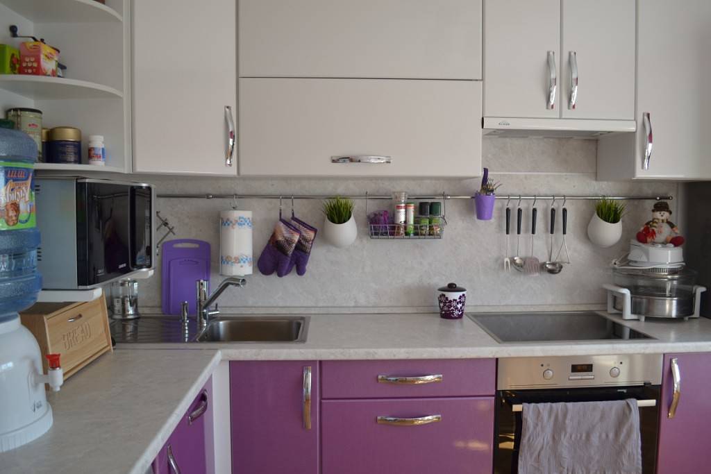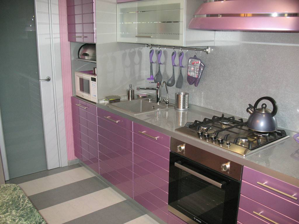 - если для хозяйки важен прежде всего уют и лишь потом желание сделать кухню стильной и современной, то стоит остановиться на пепельно-сиреневом и бледных оттенках фиолетового, при этом мебельные фасады не должны быть глянцевыми.