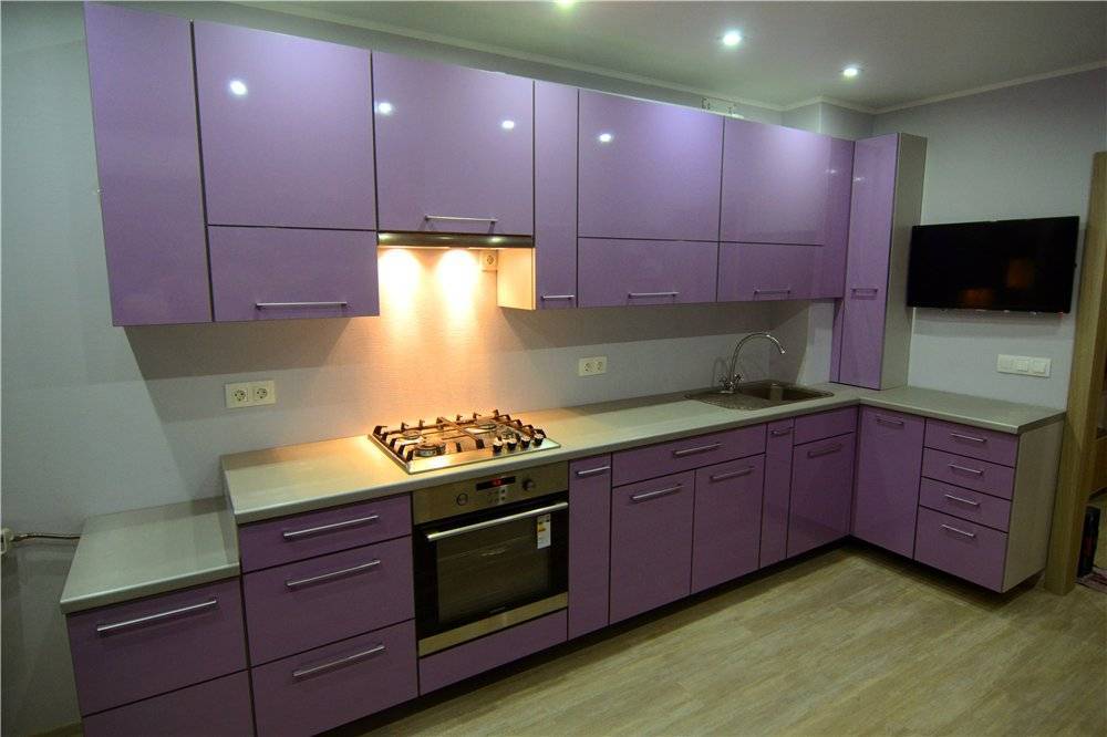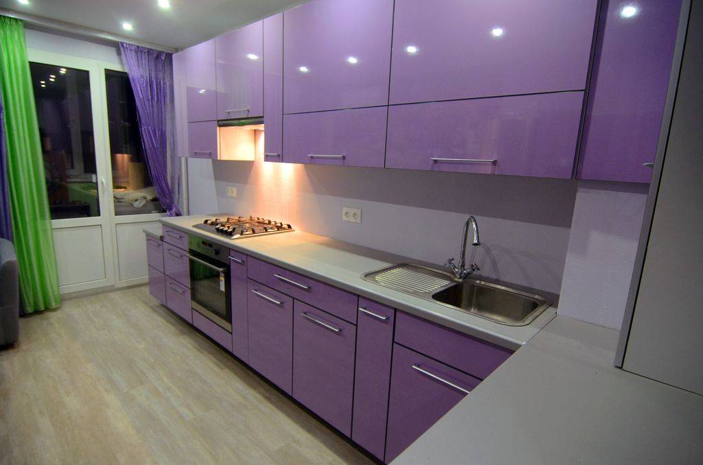- если мебельные фасады темного или насыщенного оттенка фиолетового, то мебель должна иметь строгие геометрические формы;