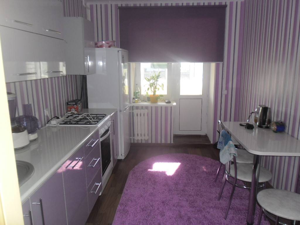 Поскольку кухня – это место, где обои подвергаются постоянному воздействию, выбор покрытия для этой комнаты должен основываться не только на эстетических, но и на практических свойствах. Поэтому сиреневый цвет в рабочей зоне должен быть темным. Зато сиреневые обои на кухню в обеденную зону могут иметь светлый оттенок.
