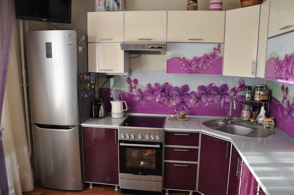Сиреневый и белый можно назвать своего рода классикой. Это беспроигрышное сочетание цветов, идеально подходящее для оформления интерьера кухни.