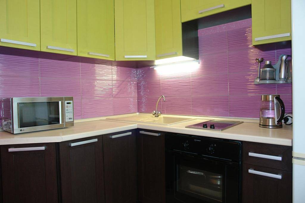 В сочетании с сиреневым зеленый способен отлично оживить интерьер кухни, добавив ему легкости и оригинальности. Использовать эти два цвета в равном соотношении можно лишь в том случае, если помещение большое по площади. Но все же, при оформлении интерьера стоит придерживаться выше упомянутого правила 60/30/10, выбрав только сиреневый или только зеленый в качестве основного цвета, а второй сделав дополнительным.