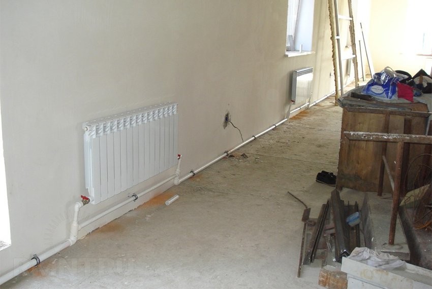 - Выполняется навешивание радиаторов – их положение проверяется строительным уровнем.