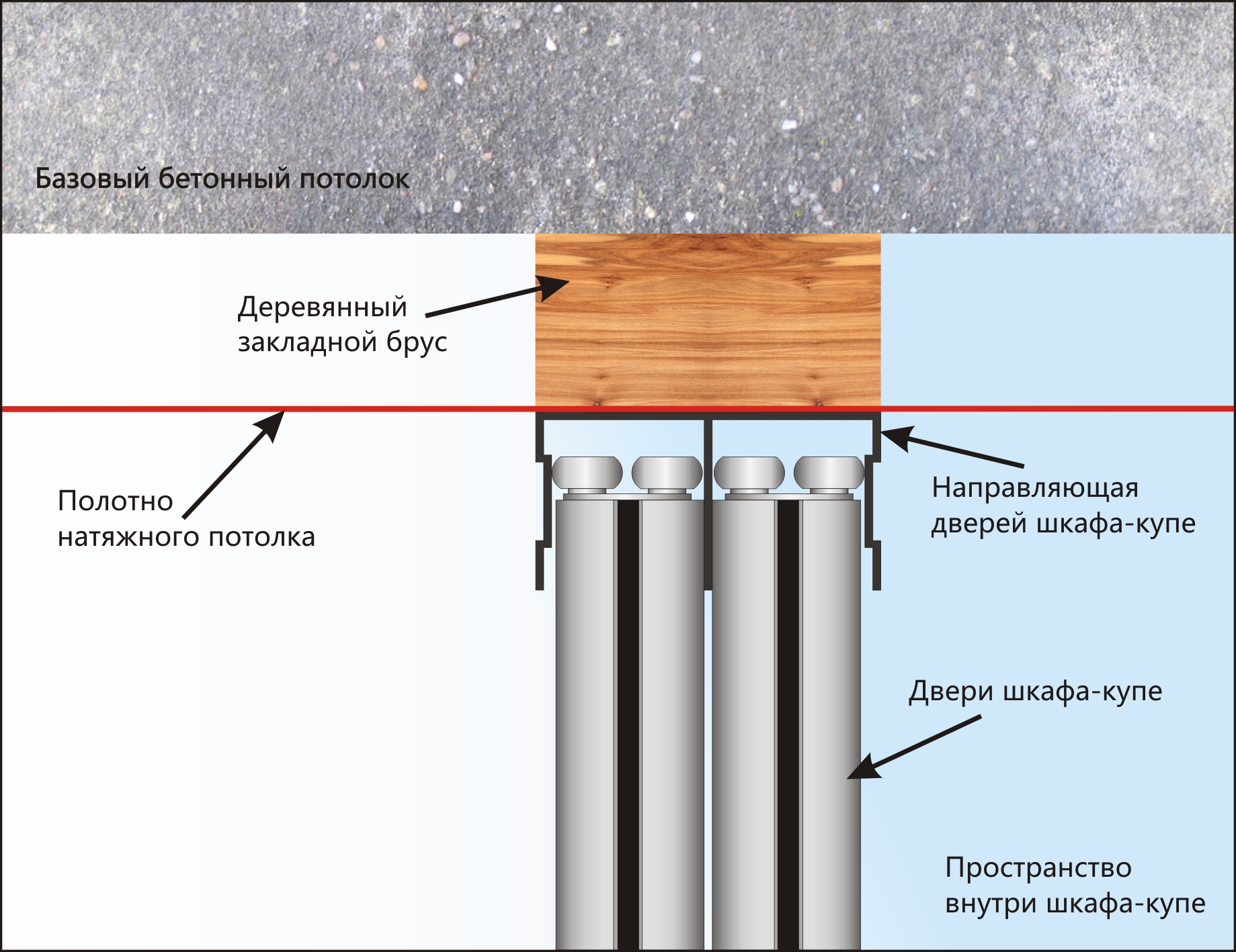 Как присоединить натяжной потолок к шкафу-купе независимым креплением