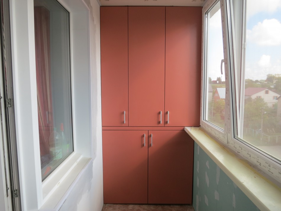 Что касается габаритов, высота конструкции шкафа не должна быть больше вертикальной длины балкона. Ширина изделия может быть чуть уже балконной зоны либо конструкция может размещаться впритык к стенам.
