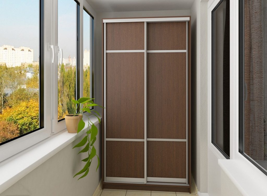 Последние представлены как алюминиевые дверцы, которые защищают содержимое от воздействия лучей солнца, пыли, влаги. Если балкон плохо остеклен, данный вариант — самое оптимальное решение. Раздвижные системы имеют разные направляющие – нижние, верхние, боковые, но какие бы не были выбраны, они фиксируют дверное полотно. Главное преимущество такого варианта – экономия пространства. Распашной вариант ушел в прошлое, ведь при открытии занимает много пространства. Однако, это самый дешевый способ, ведь осуществить монтаж таких дверей очень просто. Необходимо всего лишь на петли посадить дверцы.