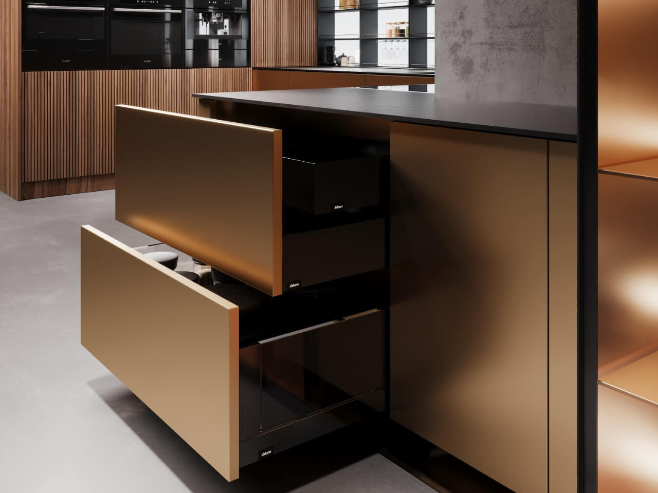 Интересно, что систему профилей можно совместить с «push-to-open» — так открытие шкафов и ящиков станет более сподручным.