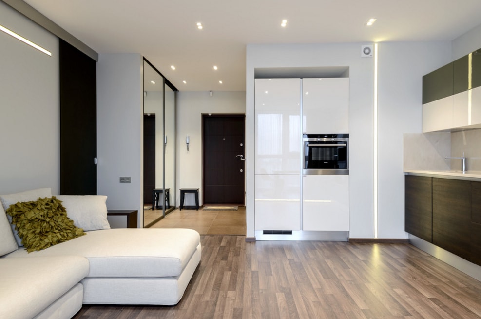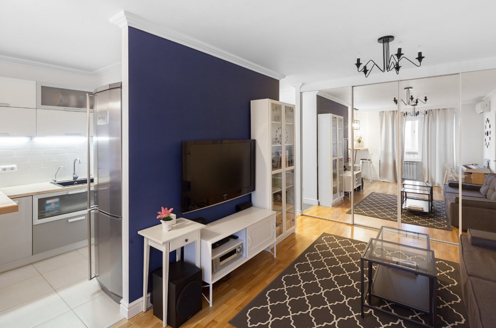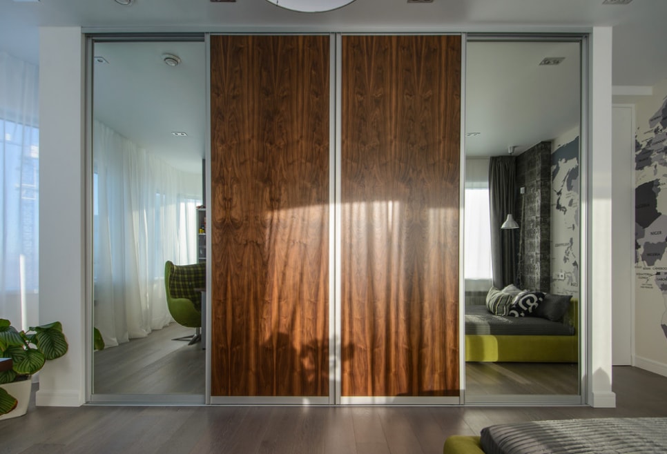 - зонирование — шкаф-купе подходит для зонирования помещений;