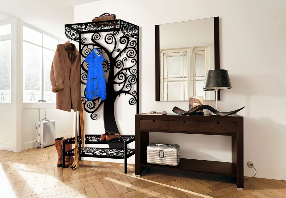 Но при этом важно и стилистическое соответствие. Ведь приобретя, например, массивное изделие из дерева для прихожей в стиле модерн, вы только подчеркнете дисбаланс в общей композиции