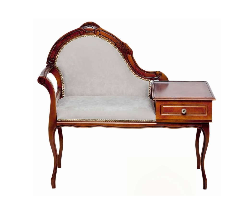 Кроме того, они бывают со спинкой и без неё, с подлокотниками и без них. Подлокотники могут присутствовать частично – либо только с одной стороны либо один полноценный, а второй немного уменьшен. Для прихожей подбирается исходя из размеров коридорной площади.