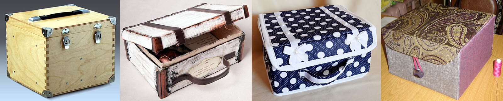 Если вам попался подходящий по размерам деревянный ящик, напр., приборный, то дело сводится к тому, чтобы обрезать его высоте, если надо, удалить ненужные внутренние перегородки и ложементы, а затем задекорировать как хочется и умеете (слева на рис.). Но декор картонных коробок (справа) требует предварительного упрочнения вместилища, т.к. оно одноразовое.