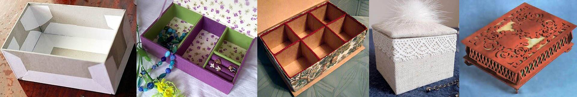 Можно также воспользоваться уплотненным картоном с оболочкой из ткани. Подобная шкатулка с крышкой также будет обладать привлекательным внешним видом и подойдет для хранения драгоценностей. Крышка дублируется синтепоном.