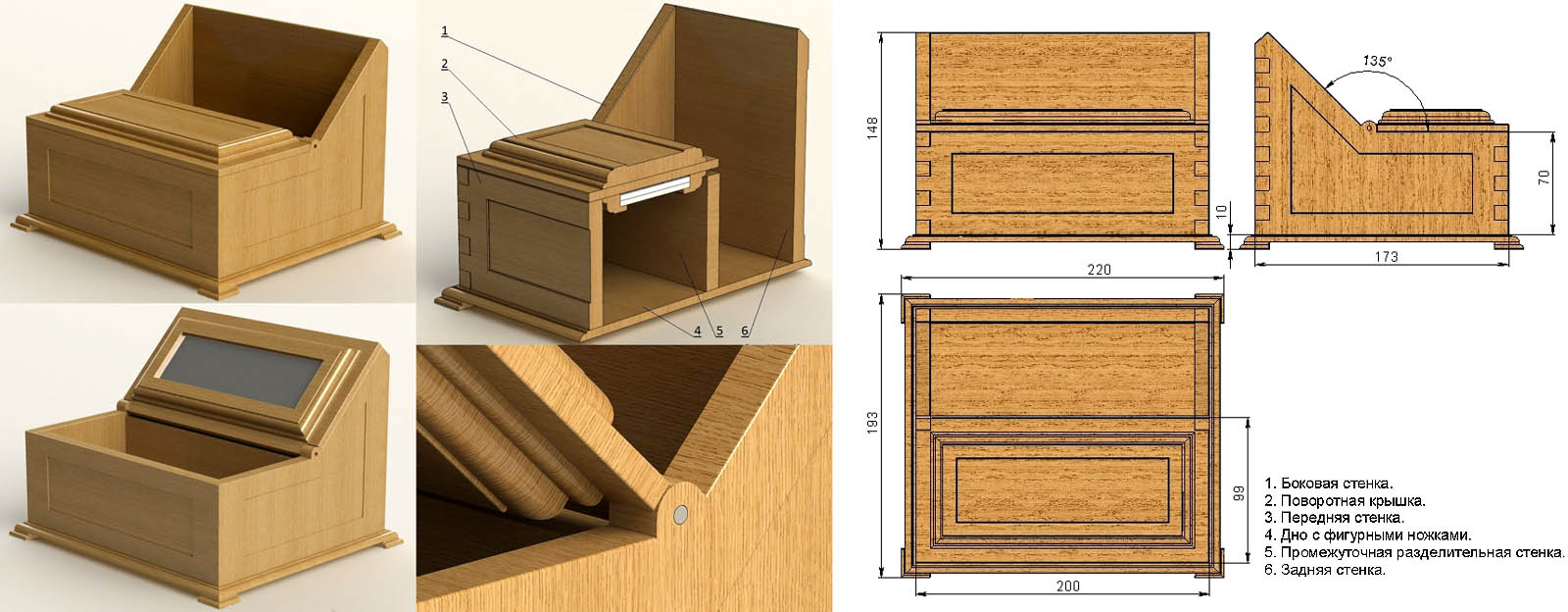 Существуют различные способы изготовления деревянной шкатулки. Простой способ, который больше всего подойдет новичкам, предусматривает использование листа фанеры, который должен быть тщательно выровнен и обработан от разного рода дефектов. После подготовки поверхности она размечается в соответствии с чертежом будущей шкатулки, для чего потребуются линейка, циркуль и карандаш.