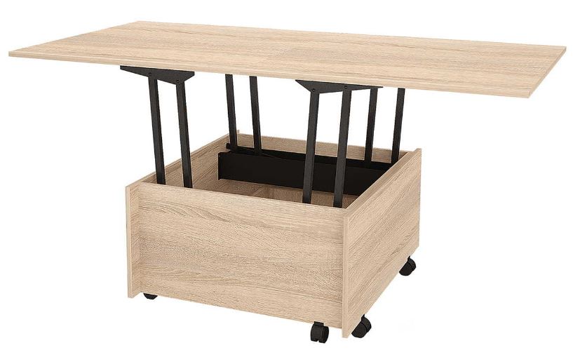 Стол имеет возможность трансформировать столешницу с помощью подъёмного механизма.