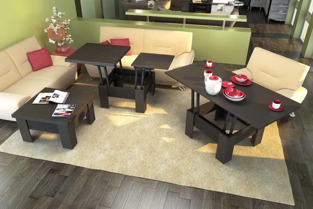 Основным плюсом журнального стола-трансформера является его хорошая устойчивость. В основном такая мебель производится из водостойкого и ударостойкого ЛДСП.