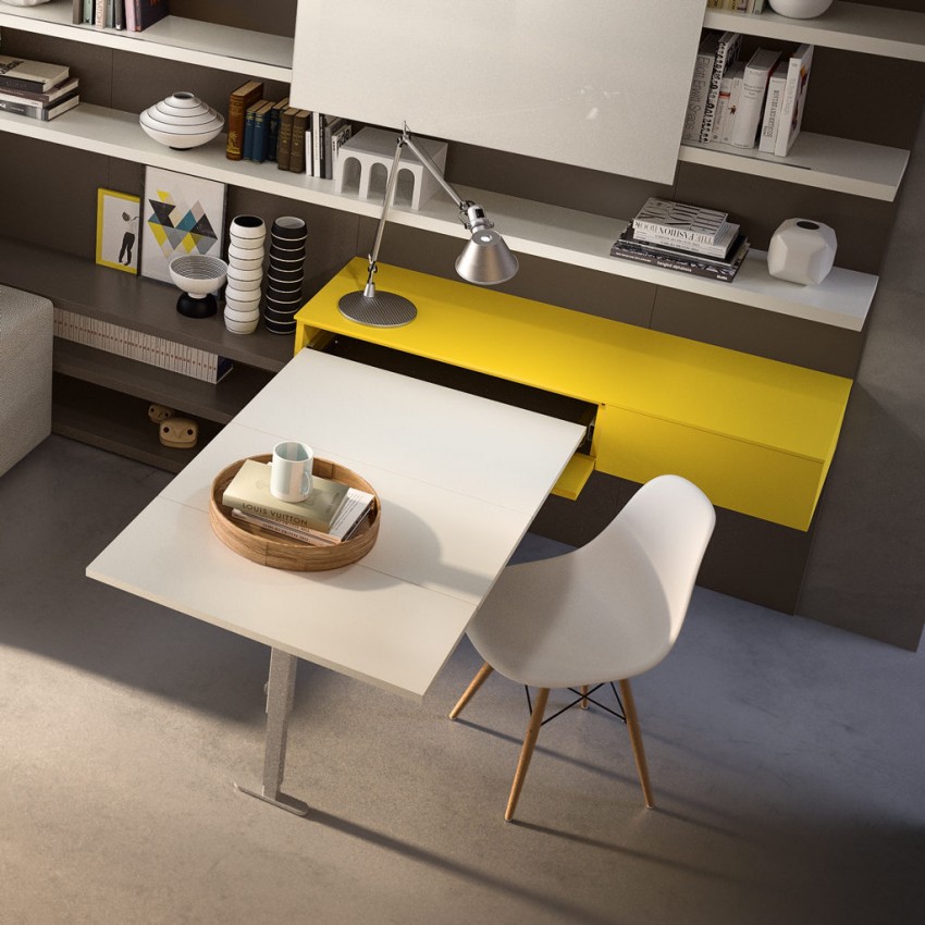 С помощью такого эргономичного модуля-невидимки можно не только сделать композицию интерьера идеальной, но и избежать установки громоздких обеденных моделей.