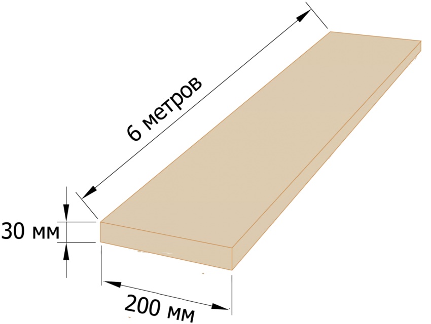 - длина 6 метров;ширина 20 сантиметров;толщина 5 сантиметров.