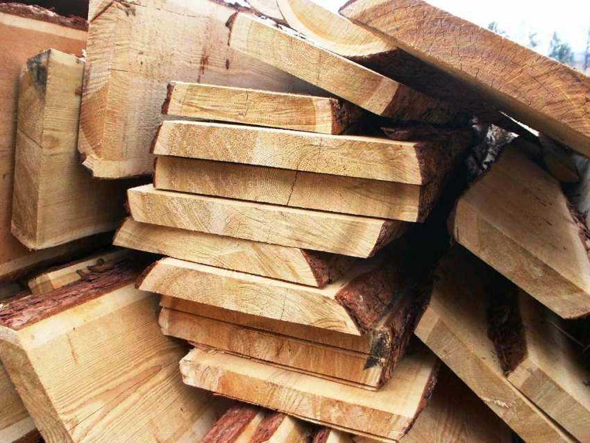- Необрезная доска имеет пропиленные пласти и необрезанные кромки (древесную кору). Типовая высота доски — 25, 40, 50 мм при длине 4 или 6 м. Необрезной материал пригождается для возведения определенных сооружений, для которых не нужна древесина высоких сортов: навесов, временных конструкций, изгородей. Этот вид стройматериалов в сухом виде также применяют в качестве основания под строганые профилированные изделия типа стеновой вагонки.