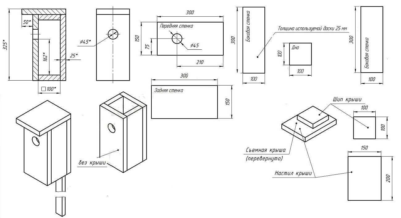 Скворечник своими руками: чертежи и размеры для изготовления классической модели