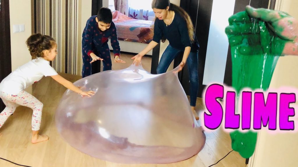 Бесспорно, это оригинальный рецепт лизуна, сделать который хочется даже из личного интереса. Собственно, мы его проверили и советуем. Плюс в том, что получится создать пузыри, которые прикольно лопать. Для приготовления нужен краситель, клей, активатор в виде тетрабората натрия или средства для линз. Мы использовали второй вариант. Для приготовления не придется тратить много времени. Достаточно залить канцелярский клея или ПВА в виде карандаша, добавить краситель любого цвета и сверху добавить несколько капель загустителя. Как только начнет загустевать, тонким слоем покрываем стол и накидываем лентами сверху так, чтобы вовнутрь проникал воздух. Можно сделать большой пузырь или сразу несколько. Конечно же, долго бабл-слайм держаться не будет, но получить удовольствие от забавы с таким антистрессом точно успеете.