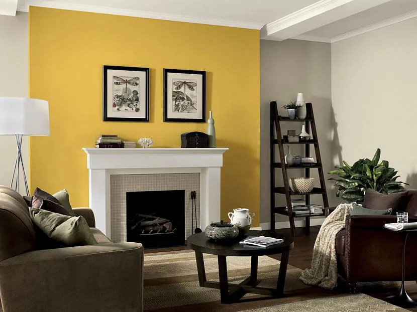 Интерьеры в чистом цвете встречаются редко. Чаще всего ярко желтым оформляют одну стену или расставляют акценты (аксессуары, текстиль)