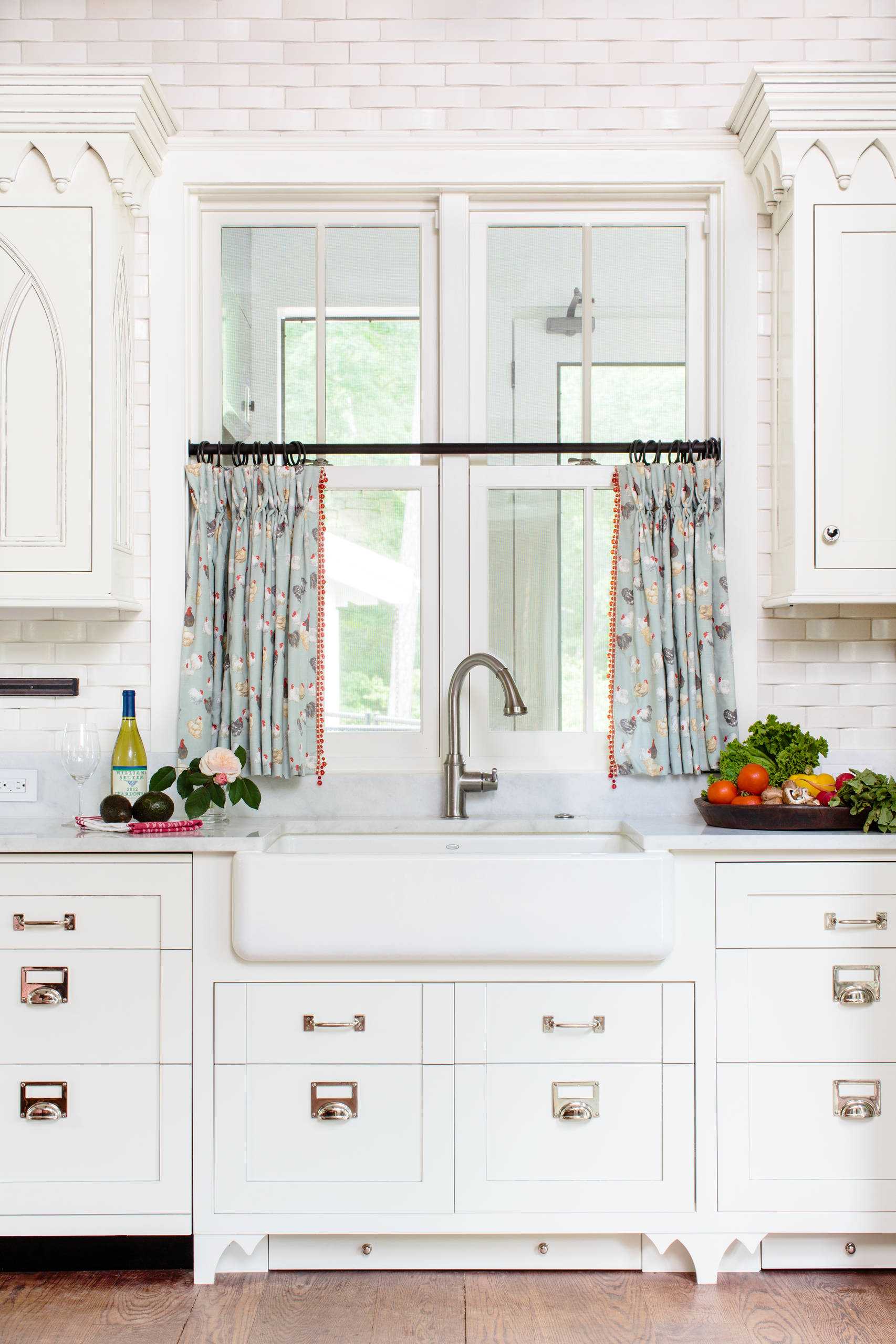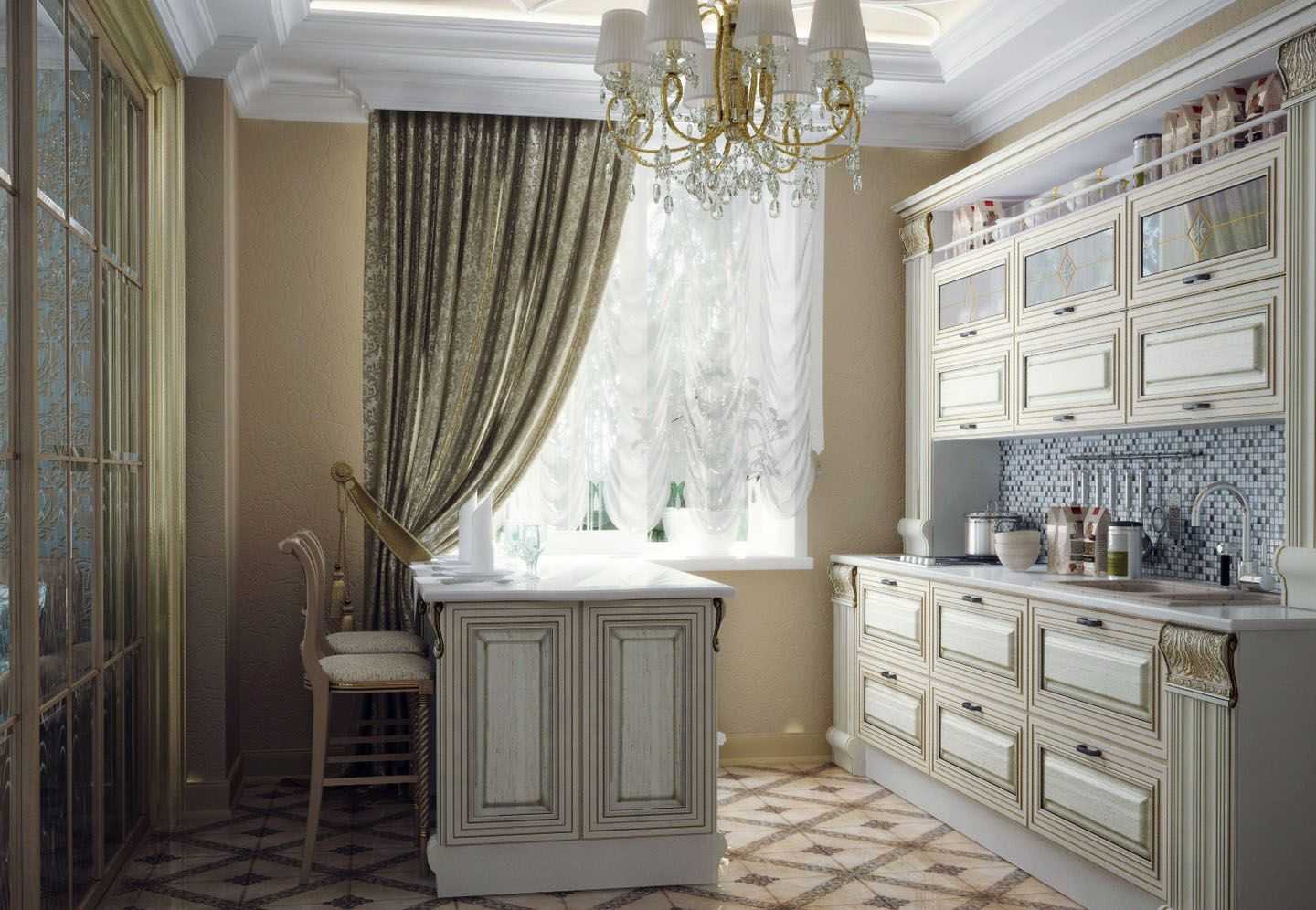 Если хочется создать романтичный интерьер в кухне, подойдут австрийские или французские пышные шторы, которые по длине достигают уровня подоконника