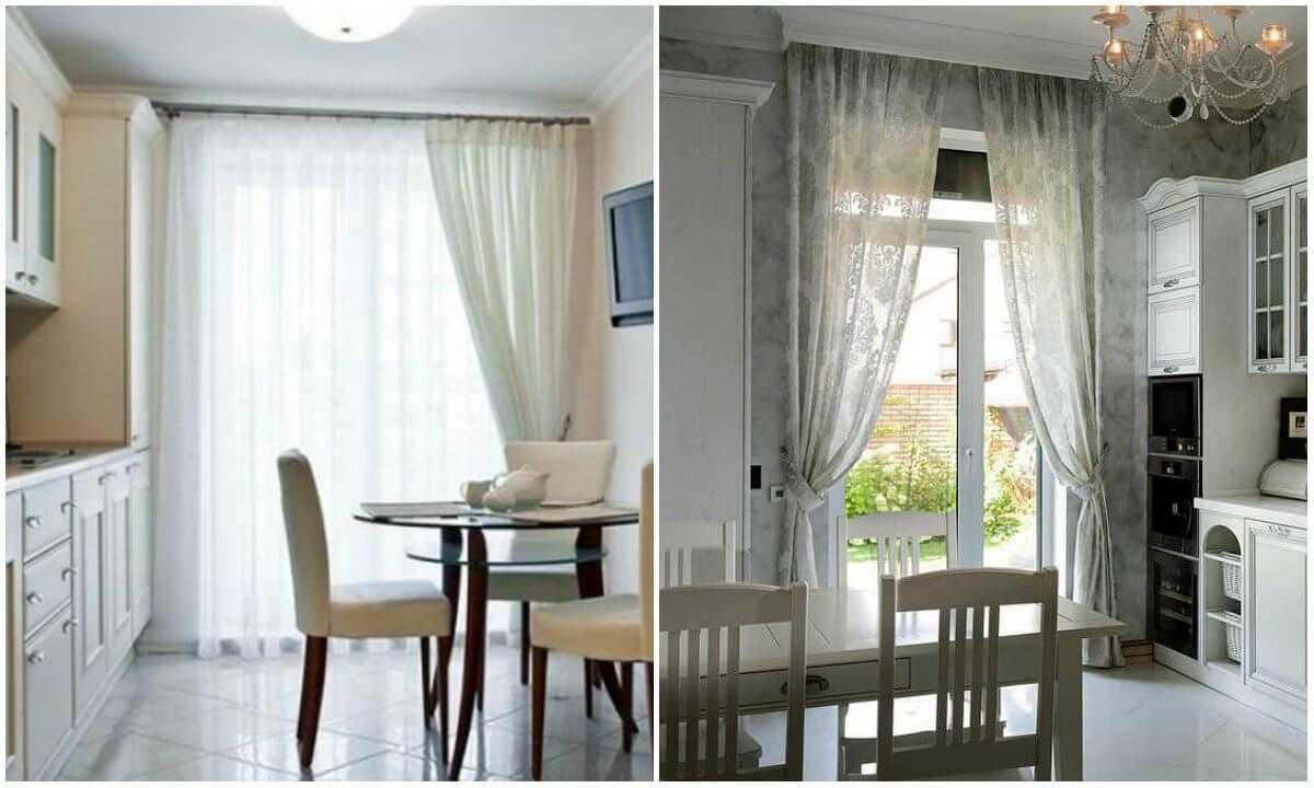 Если кухня имеет выход на балкон, то здесь уже нужно подбирать шторы с учетом данного фактора. Подойдут раздвижные гардины или короткие занавески, а также шторы с подъемным механизмом, например, рулонные или римские.