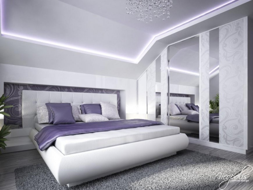 Как можно воплотить идею дизайна спальни в сиреневых и фиолетовых тонах: