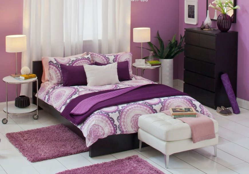 Спальня фиолетовая, фото демонстрирует использование оттенка фуксии