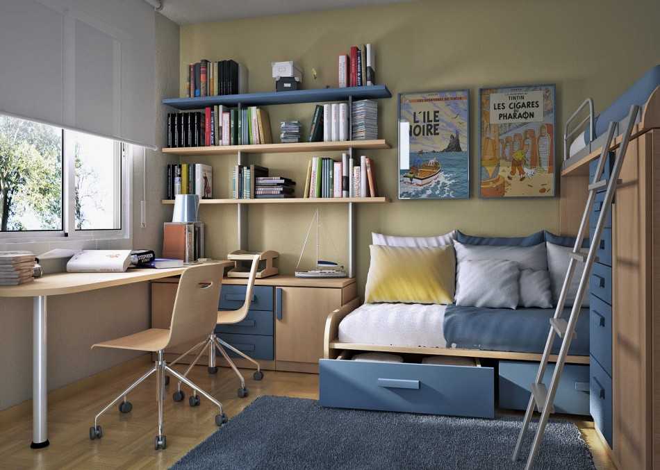 Для экономии пространства в хрущевке вся мебель детской комнаты должна быть максимально вместительной. Для оформления интерьера подобной комнаты лучше всего выбирать многофункциональные предметы мебели.