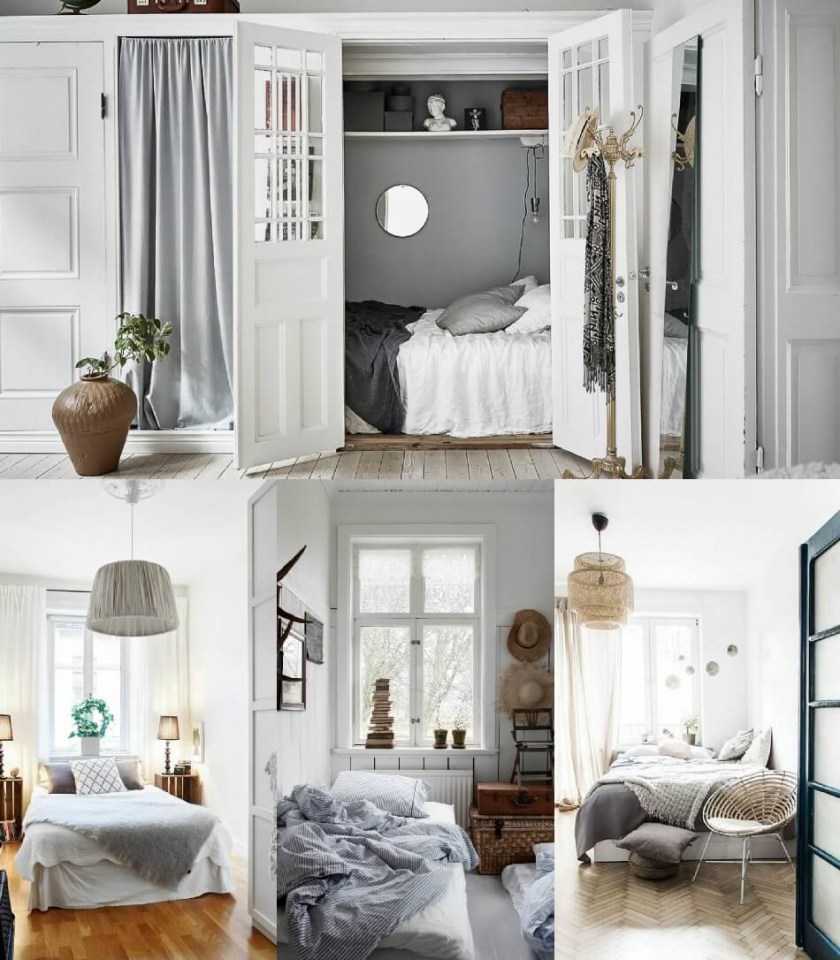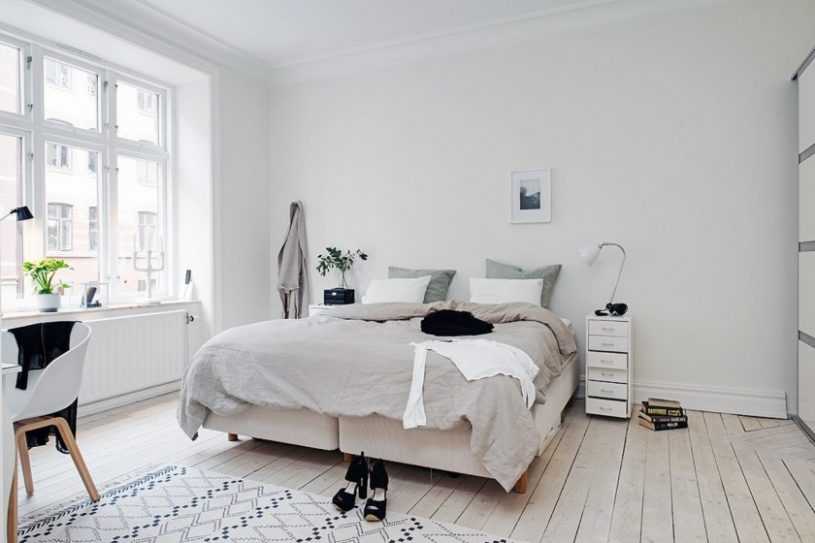 Даже небольшая спальня в скандинавском стиле может быть удобной и функциональной