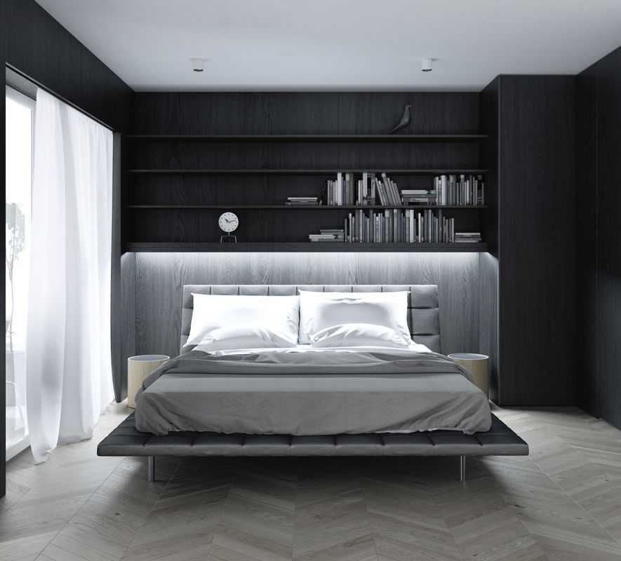 Такая спальня требует грамотного подхода к декорированию. Если перестараться с глубиной серости стен, то есть риск сделать спальню мрачной.