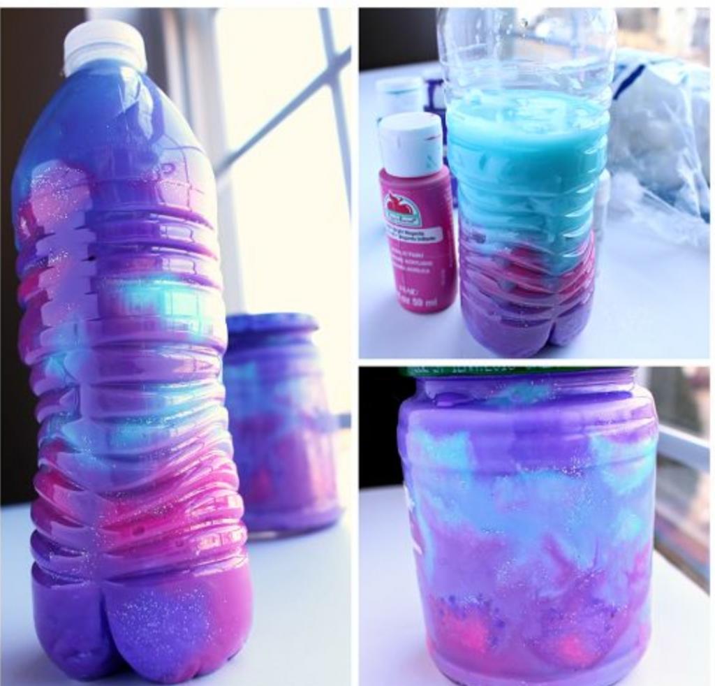 “Бутылка спокойствия” представляет собой стеклянный или пластиковый флакон, наполненный водой, клеем и блестками, который встряхивается перед глазами с целью привлечь внимание к структуре и движению жидкости. Когда у ребенка стресс, учащается сердцебиение и дыхание, а его мозг блокируется (именно поэтому он плачет после истерики без объяснения причин)