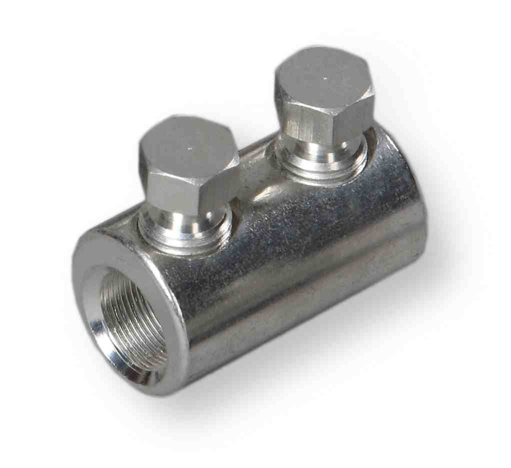 Соединители, используемые на воздушных линиях электропередач, состоят из двух половин, соединяющихся болтами. Провода укладываются в специальные пазы навстречу, параллельно друг другу, после чего обе половины зажимаются болтами.