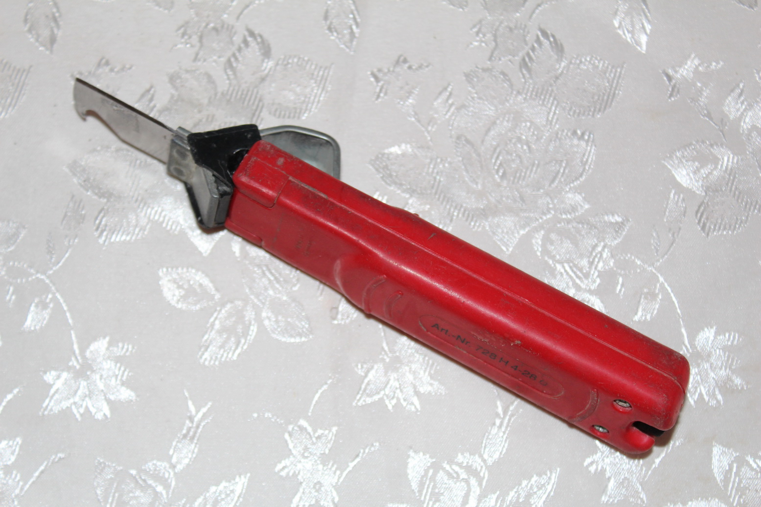 И четвертый нож универсальный для электриков. Но как оказалось — этот нож находка для сантехников. Нам сантехникам по работе приходиться иметь дело с проводами и кабелями. Этот нож позволяет разрезать изоляцию одним движением. Легко зачищать провода и очищать внутренние резьбы.