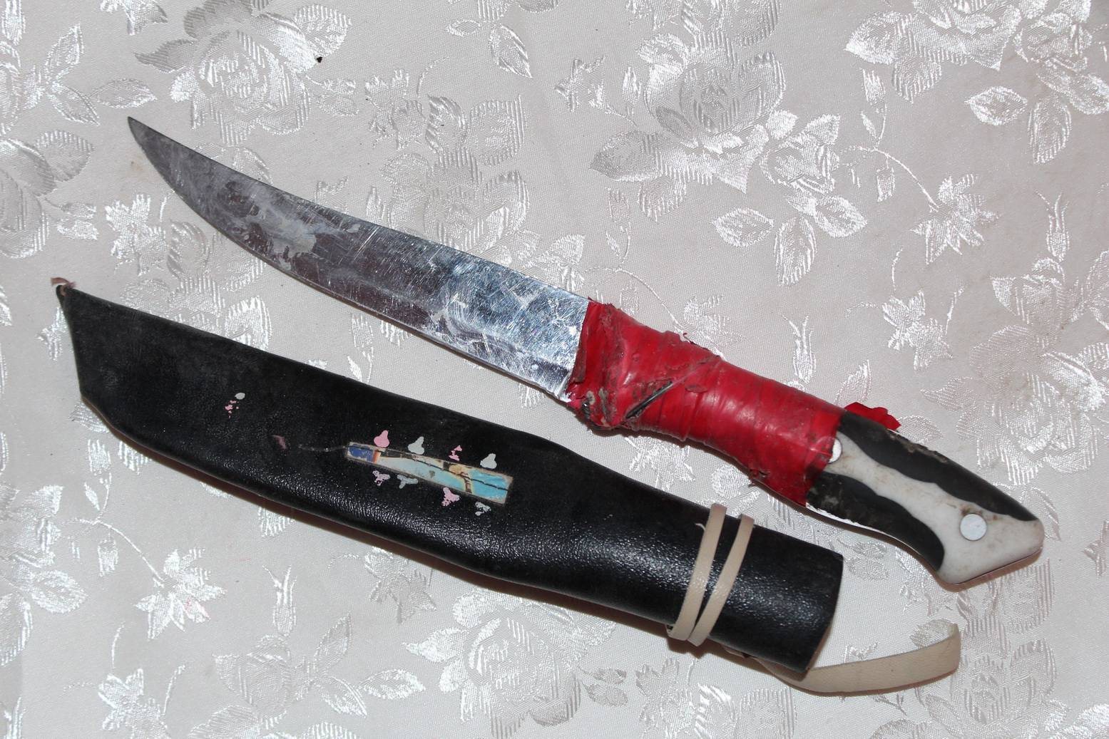 Первый нож обычный кухонный в чехле. Таким ножом удобно резать листы полистирола, полиэтилен и хлебушек на обед.