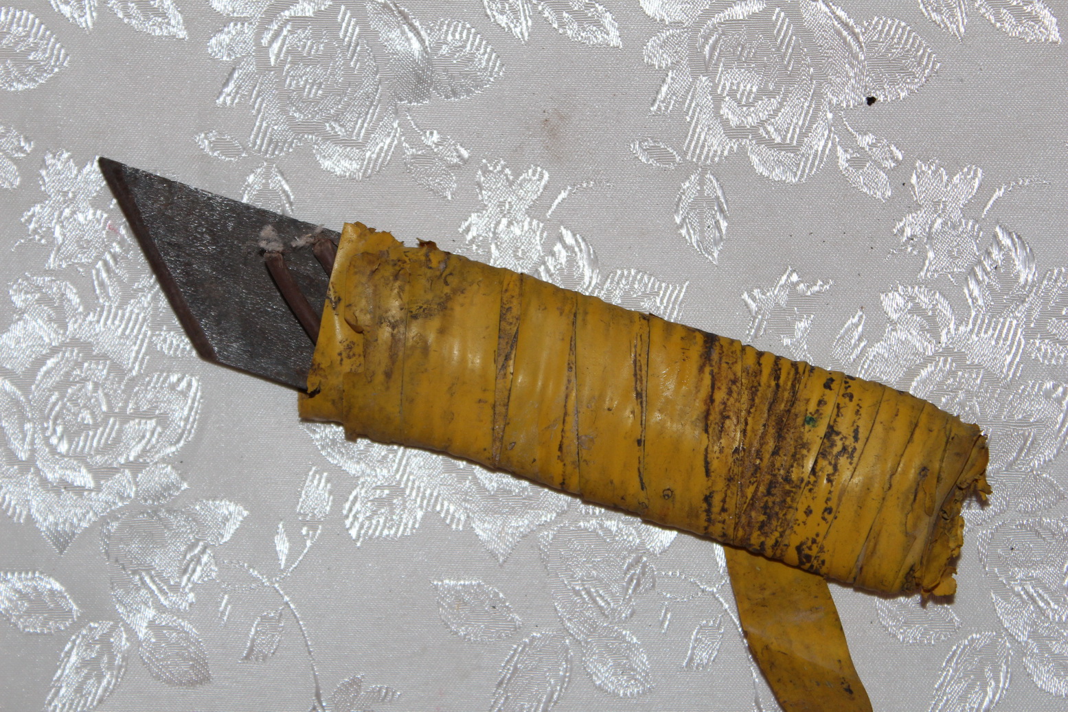 Второй нож сделан из ножовочного полотна и называется в простонародье косуха. Таким ножом работают в основном сапожники. В нашем случае нож удобен для раскалывания брусков из дерева и очистке стальных труб от краски.