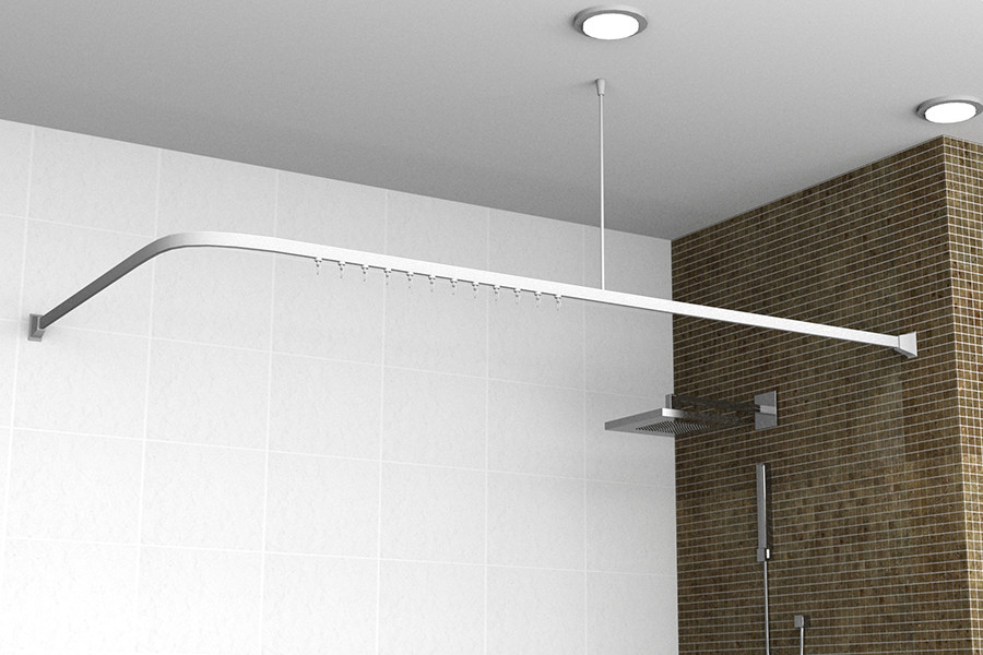 Дуговые, полукруглые. Разработаны для угловых ванн стандартной или округлой формы. Нередко для фиксации такого карниза требуется использование дополнительных креплений.