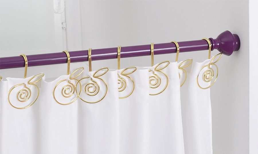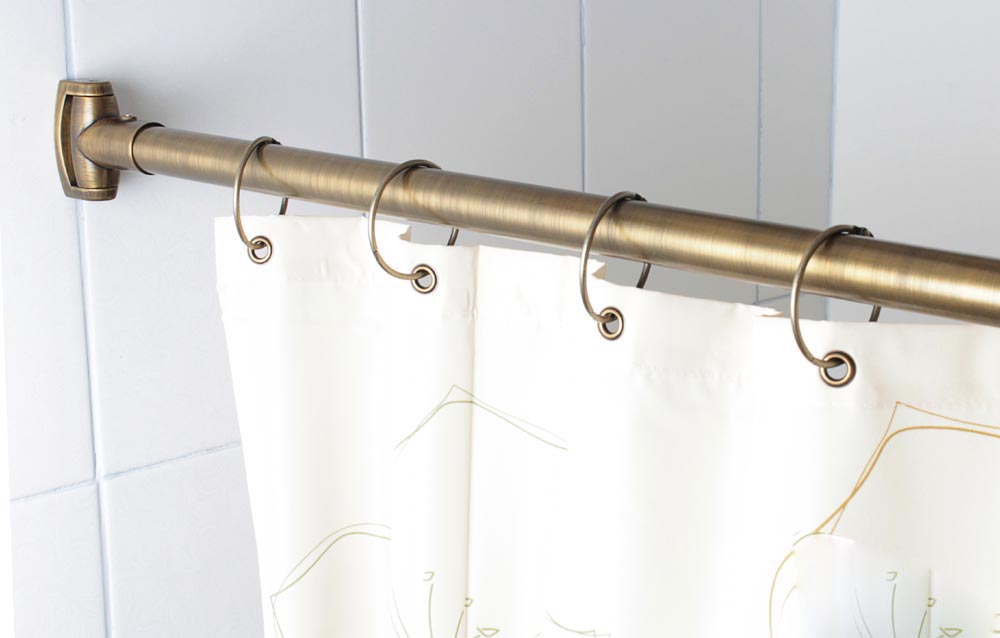 В отличие от пластика металл обеспечит максимальную упругость, не будет прогибаться под весом занавески. Из металла изготавливаются фигурные, угловые штанги для штор, т. к. к это несложно сделать с технологической точки зрения, а изогнутая палка для шторы в ванную не потеряет в упругости и прочности.