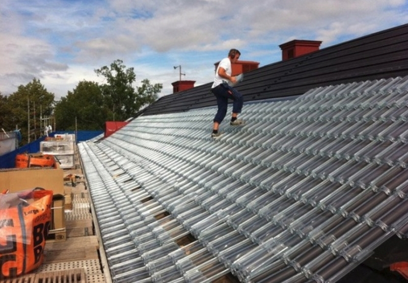 Компания SolTech Energy из Швеции разработала уникальный строительный материал для кровли зданий – черепицу из стекла. Она оснащена встроенными фотоэлементами, которые накапливают энергию солнечных лучей и позволяют использовать ее для различных потребностей (подогрева воды, отопления, работы электросетей).