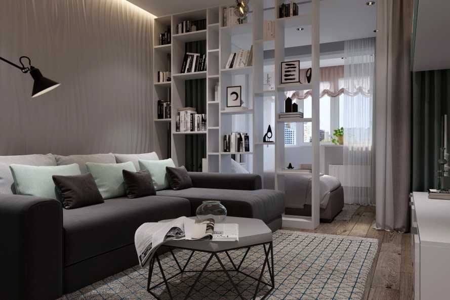 Очень популярно стало использовать стеллаж в качестве перегородки, которая помогает разделить гостиную на несколько функциональных зон.