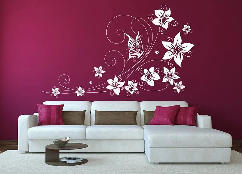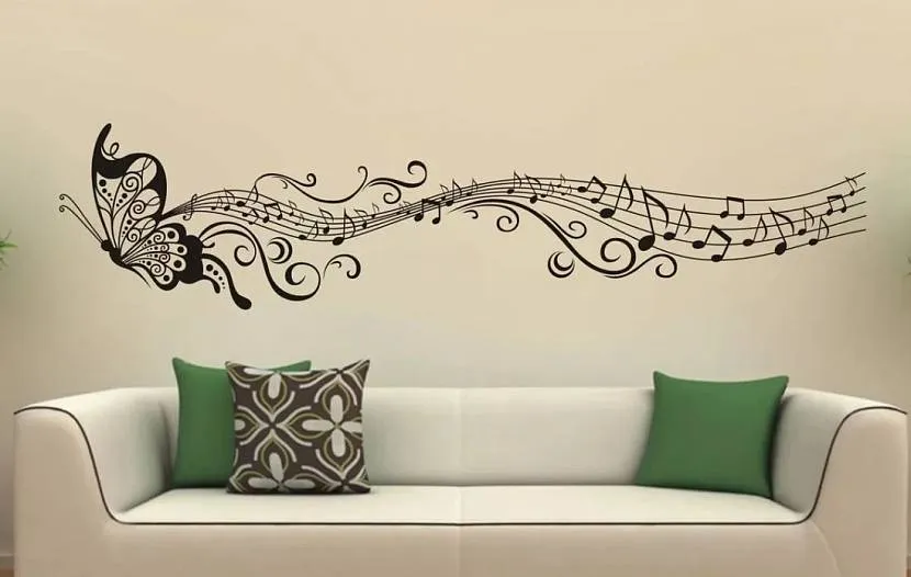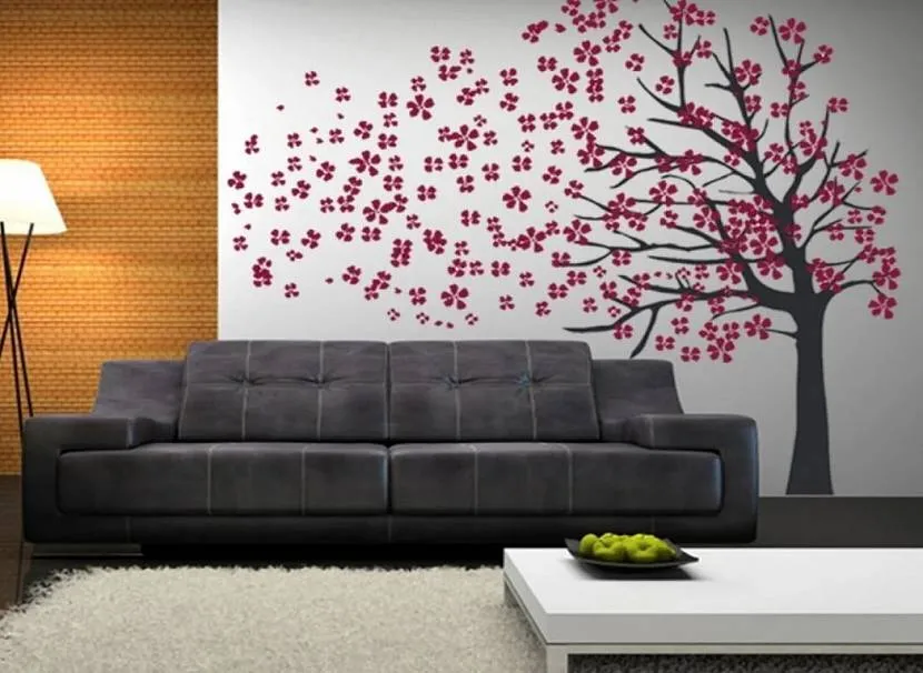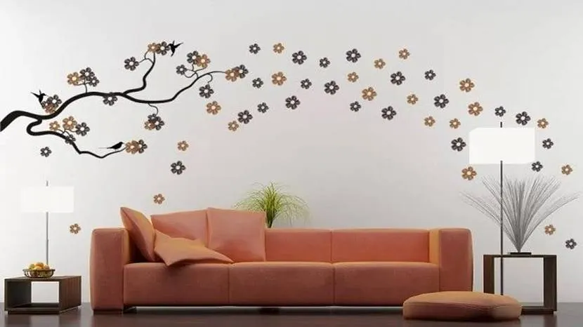 Оформление стен с помощью аппликаций подходит не только для детских комнат, но и гостиных.