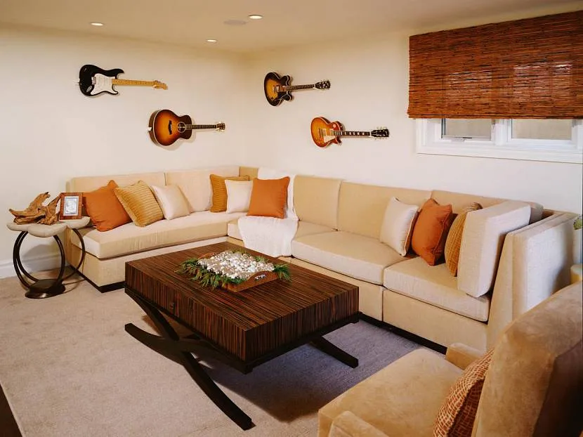 - Интерьер гостиной приобретает некую изюминку и динамичность.