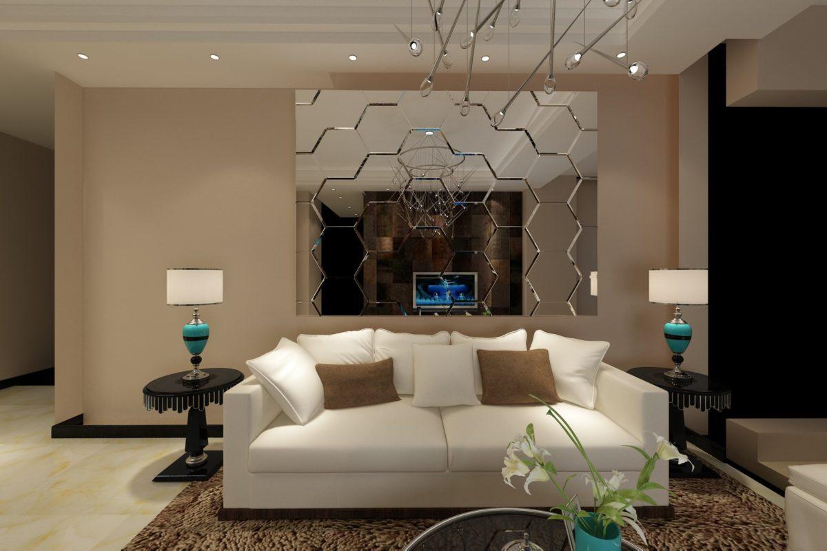 Использование зеркальных полотен над диваном имеет ряд положительных моментов.