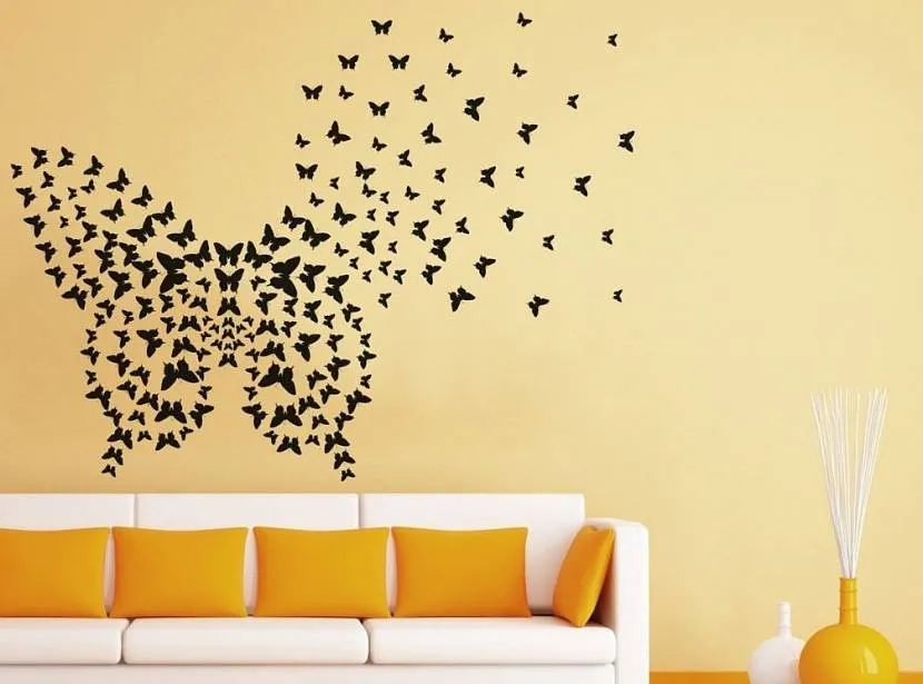 Бабочки над диваном в гостиной Источник vsaunu777.ru