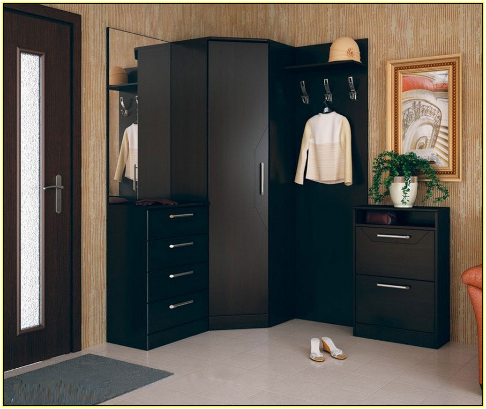 В маленькой прихожей идеален выбор углового шкафа (можно оценить по фото).