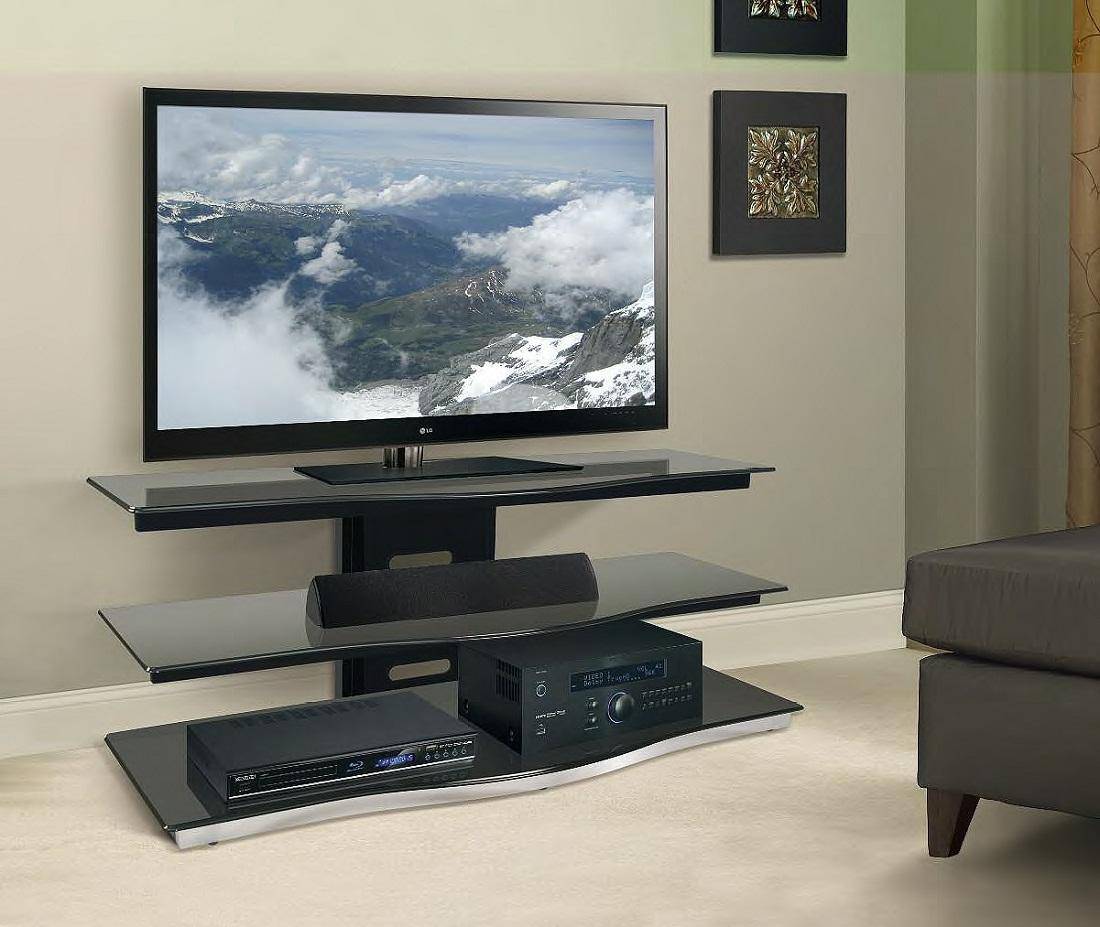 Стойка под телевизор, сделанная из стекла, отлично впишется в интерьер стиля хай-тек