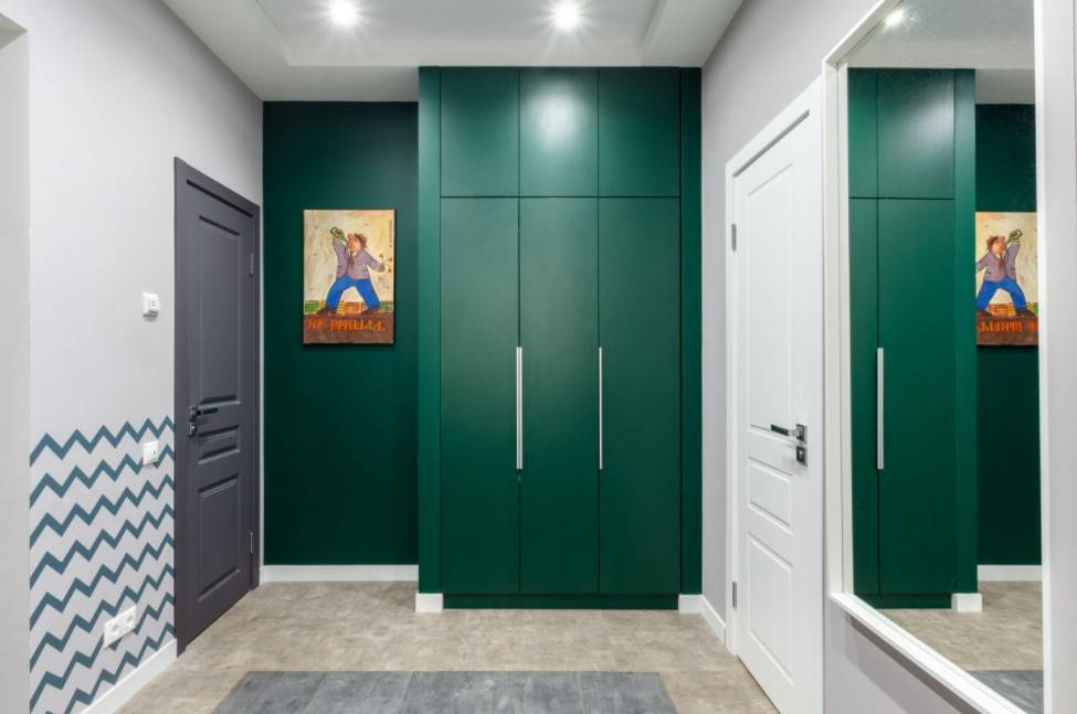 - По возможности напротив входной двери стоит расположить высокое зеркало, которое визуально делает пространство больше. Такой предмет можно разместить и на других стенах, дверцах шкафа-купе;