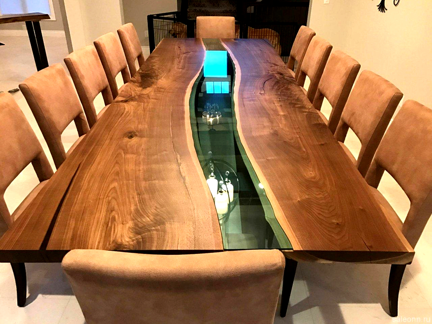 Особой популярностью пользуются столы-река изготовленные из эпоксидной смолы