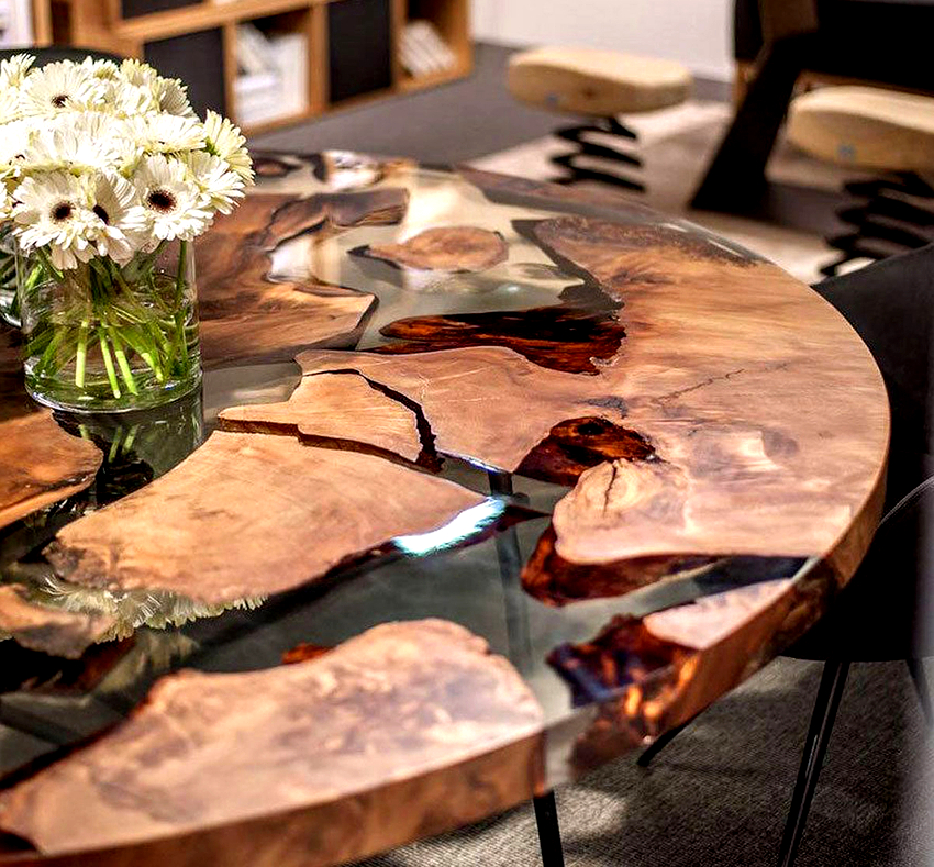 Но затем на нее обратили внимание дизайнеры, и эпоксидка стала широко применяться при производстве мебели. Какие же особенности этого материала сделали его популярным?Дело в том, что при высыхании смолы не изменяется ее объем